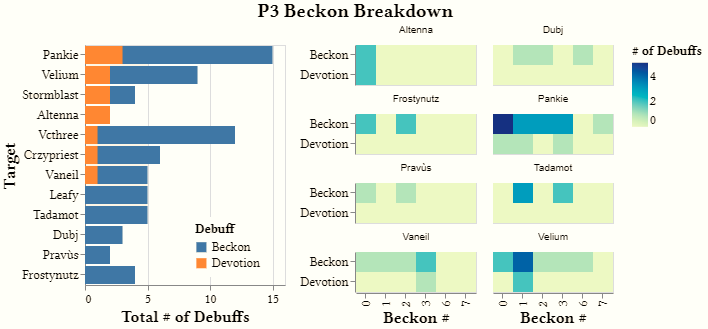 A sample visualization generated using this tool from our progression on Queen Azshara, showing the breakdown of "Beckon" casts—if not handled correctly, these result in the targeted player becoming mind-controlled ("Devotion").